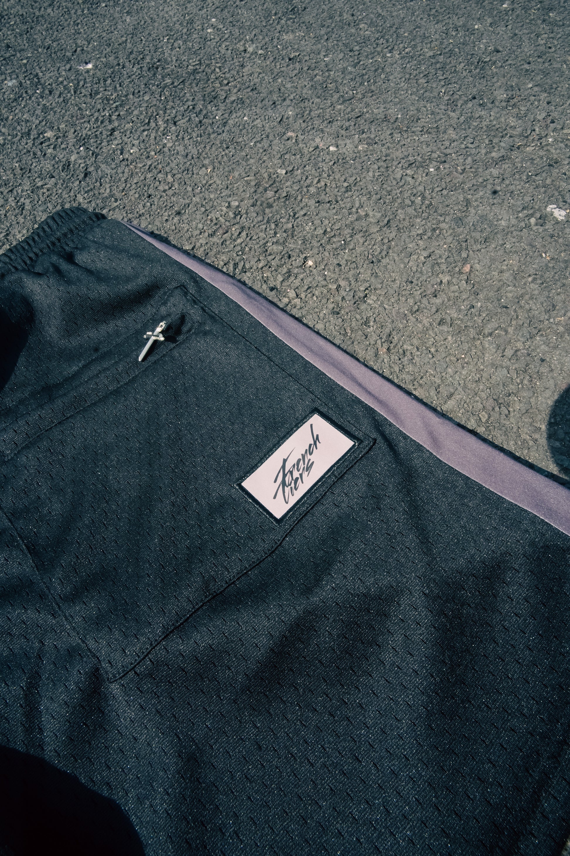• Custom Trench Tiers sword zipper pockets on the sides and back of shorts